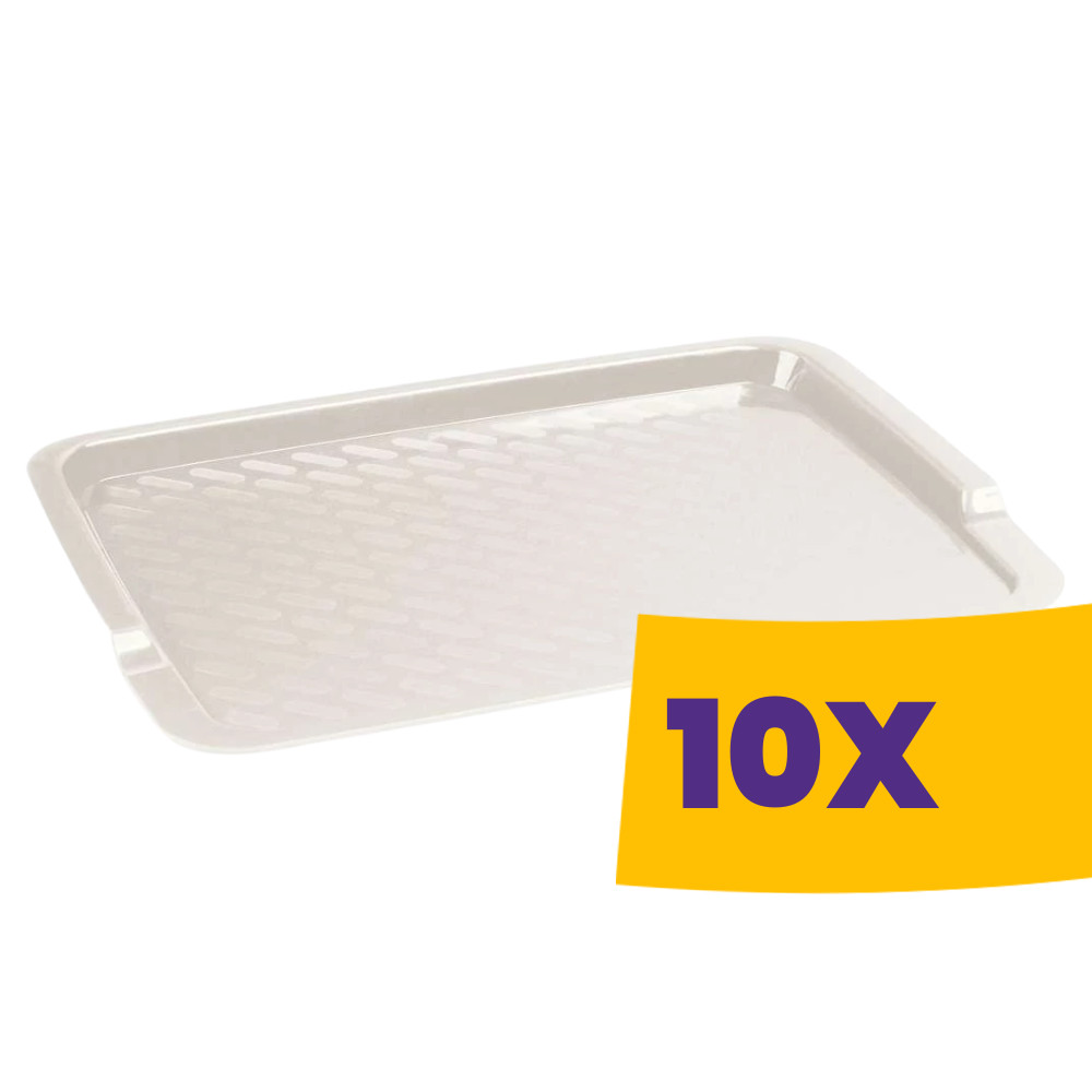 A klasszikus formájú tálca sosem fog kimenni a divatból. Tökéletes kellék a családi összejöveteleken és a mindennapi használat során is, de az éttermekben és bárokban is kiváló. Nagy méretének köszönhetően több fogás is elfér rajta, de használható akár edényszárító tálcaként is. Kiváló minőségű műanyagból készül, amely nem csak strapabíró, de nagy teherbíró képességet is kölcsönöz neki.