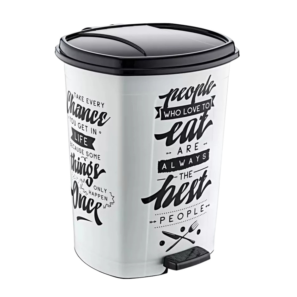 Éttermi pedálos szemetes kivehető vödörrel Fehér-fekete mintás 50L