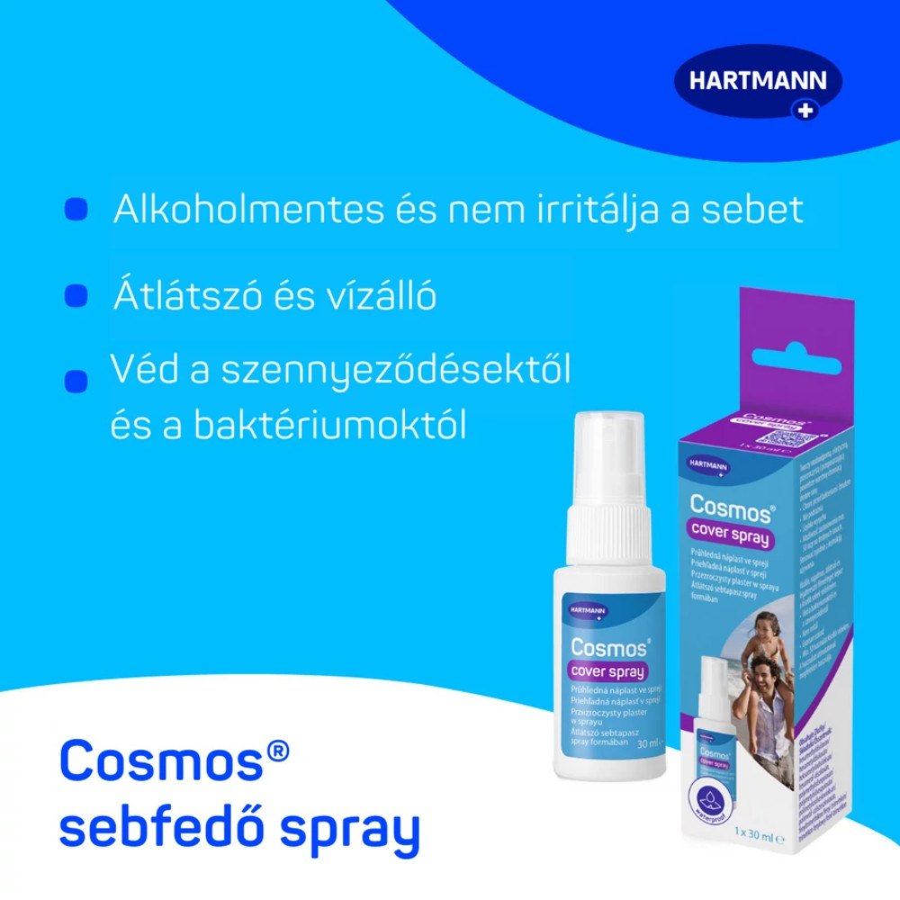 Átlátszó, filmképző sebfedő spray kisebb sebek, horzsolások és ép bőrfelületek védelmére. A folyékony film vízálló, légáteresztő és nem ragad, így kényelmesen használható még a nehezen elérhető vagy mozgó testrészeken (pl. könyök, térd, ujjak). Latex-, alkohol-, illat- és tartósítószer-mentes formulája minimalizálja az irritációt, és egy flakon kb. 50 fújásra elegendő. A képzett védőfilm védi a sebet a baktériumokkal, szennyeződésekkel és testváladékokkal szemben, csökkenti a macerációt, és elősegítheti a fájdalommentes kötéseltávolítást is. Ideális választás gyors, higiénikus és diszkrét fedéshez mindennapi elsősegélyhelyzetekben.