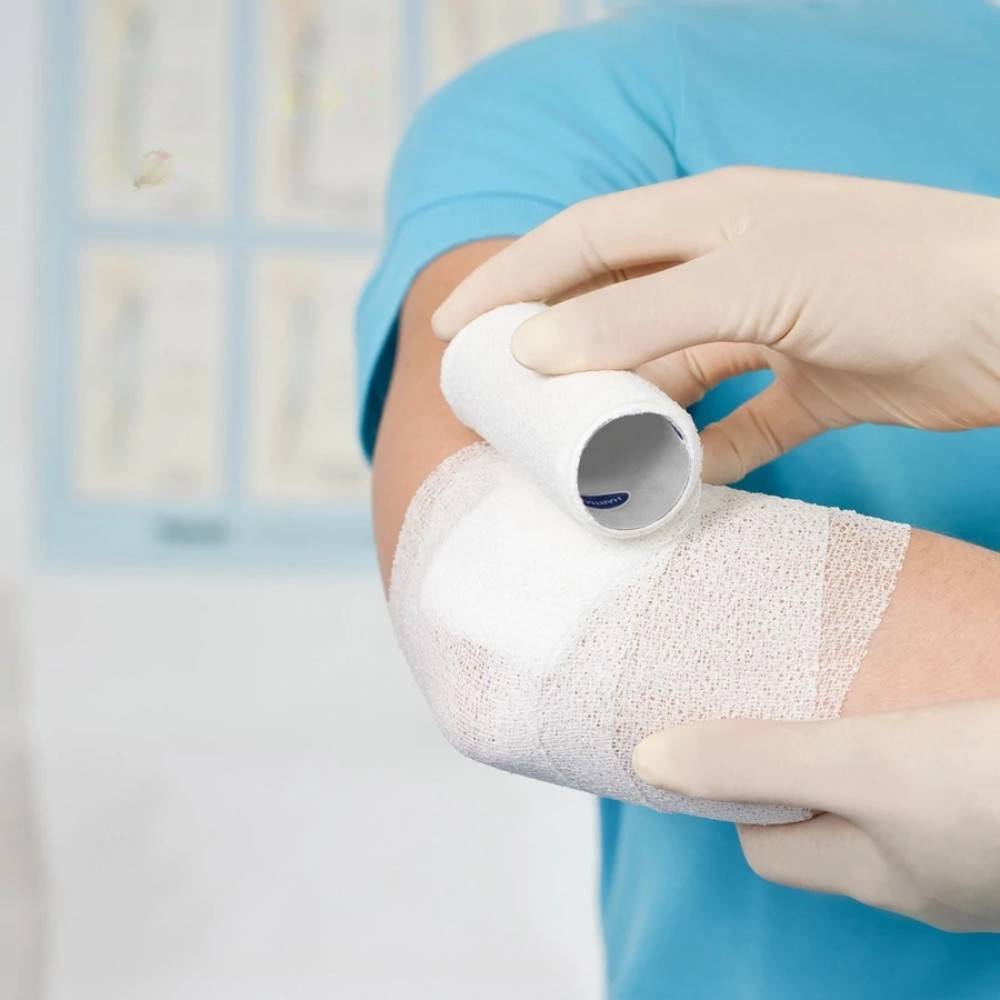 Sebfedések vagy orvosi eszközök (pl. csövek, katéterek) rögzítéséhez: a megfelelő hosszúságú pólyát tekerje a rögzítendő terület köré