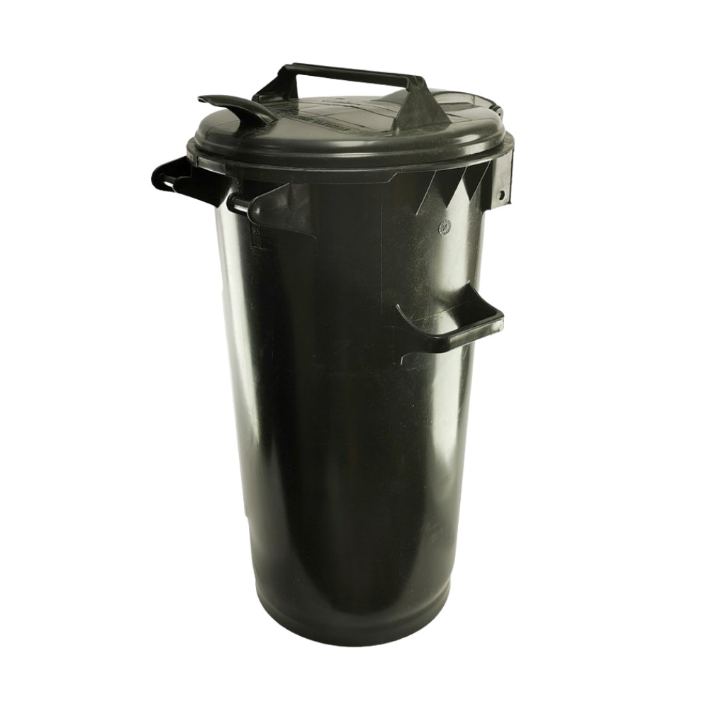 50 literes kerek fekete hulladéktároló fedéllel, praktikus és tartós megoldás kommunális hulladék gyűjtésére otthon vagy kisebb közösségi terekben.