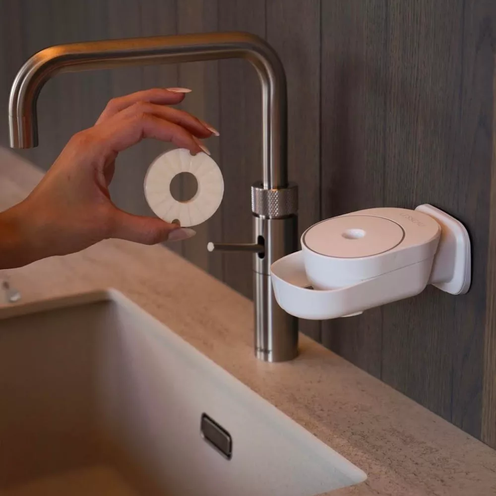 • Nulla műanyag csomagolás: Lehetővé teszi, hogy megszüntesse az összes nehezen újrahasznosítható műanyag csomagolást a mosdóból.