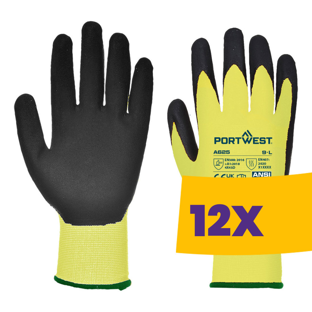 Portwest AB625 Vágásbiztos védőkesztyű, Cut D multipack sárga 12 pár