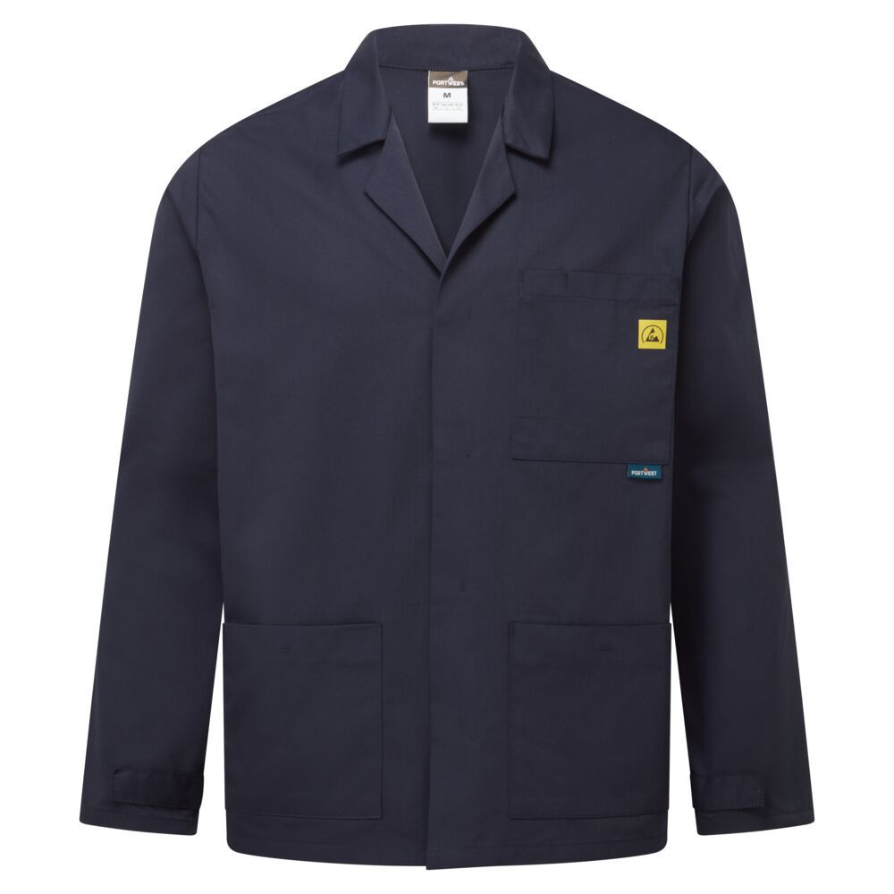 A Portwest AS18 Antisztatikus ESD köpeny ideális védelmet nyújt elektrosztatikusan érzékeny környezetben (EPA).