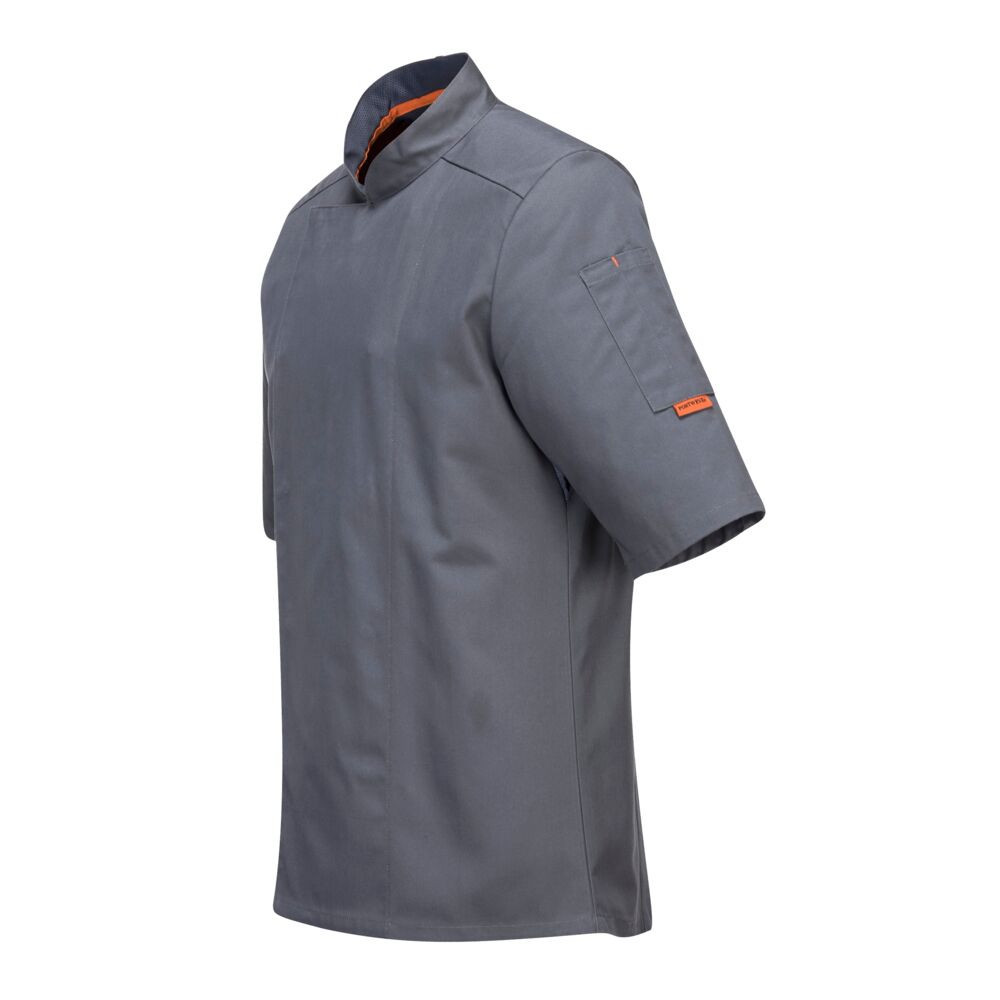 A Portwest C738 MeshAir Pro séfkabát egy csúcskategóriás munkaruha, amelyet kifejezetten a professzionális konyhák magas elvárásaihoz terveztek. A modern, szürke szín és a karcsúsított (slim fit) szabásvonal elegáns és professzionális megjelenést kölcsönöz viselőjének, miközben a beépített technológiai megoldások a legintenzívebb munkakörülmények között is kényelmet biztosítanak.