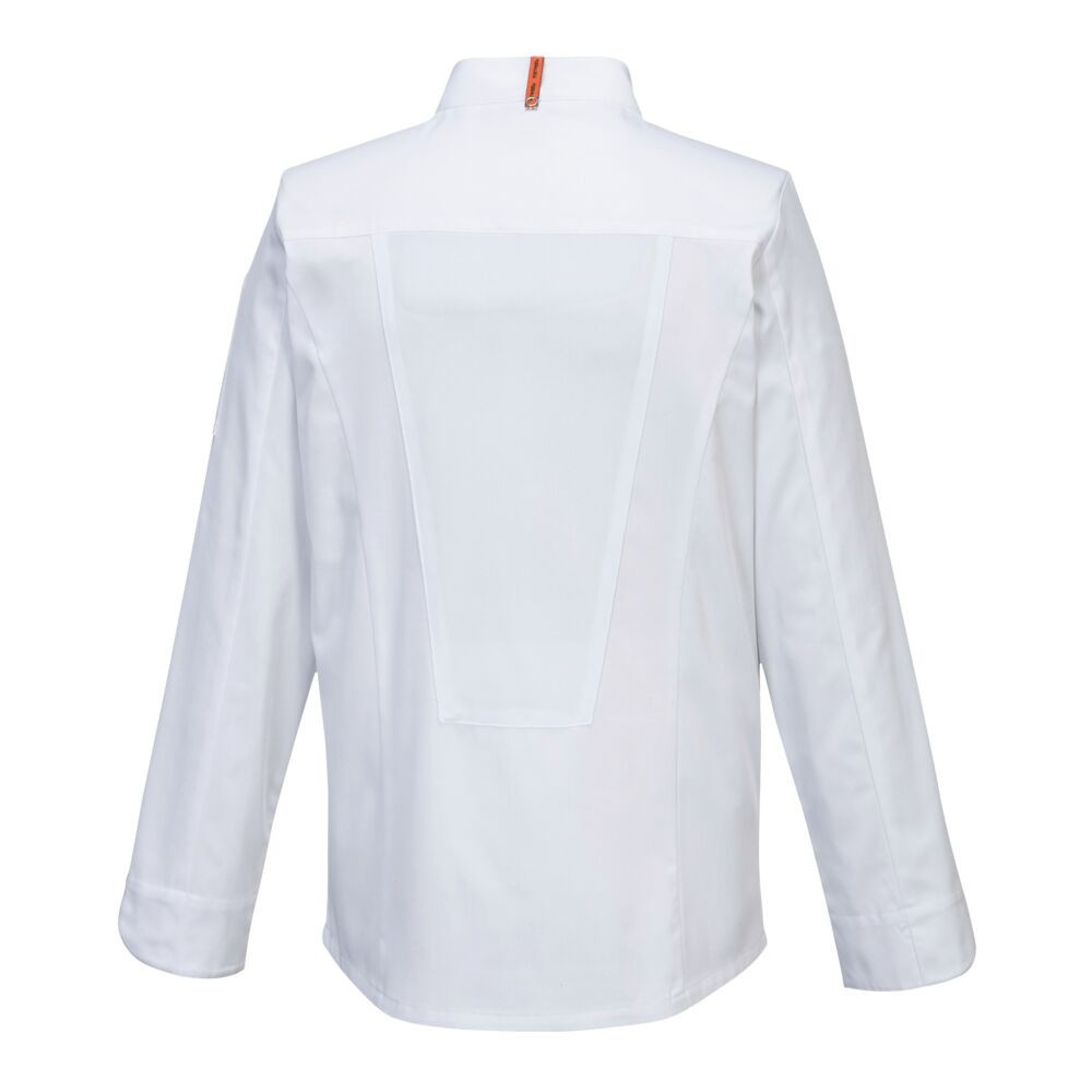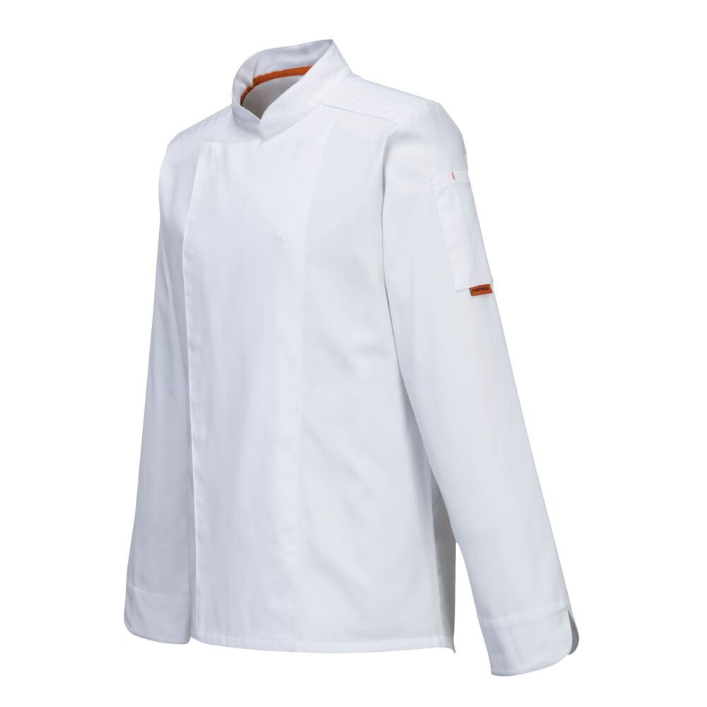A Portwest C838 MeshAir Pro séfkabát a modern szakácsok prémium választása, mely ideális a forró konyhai környezethez.
