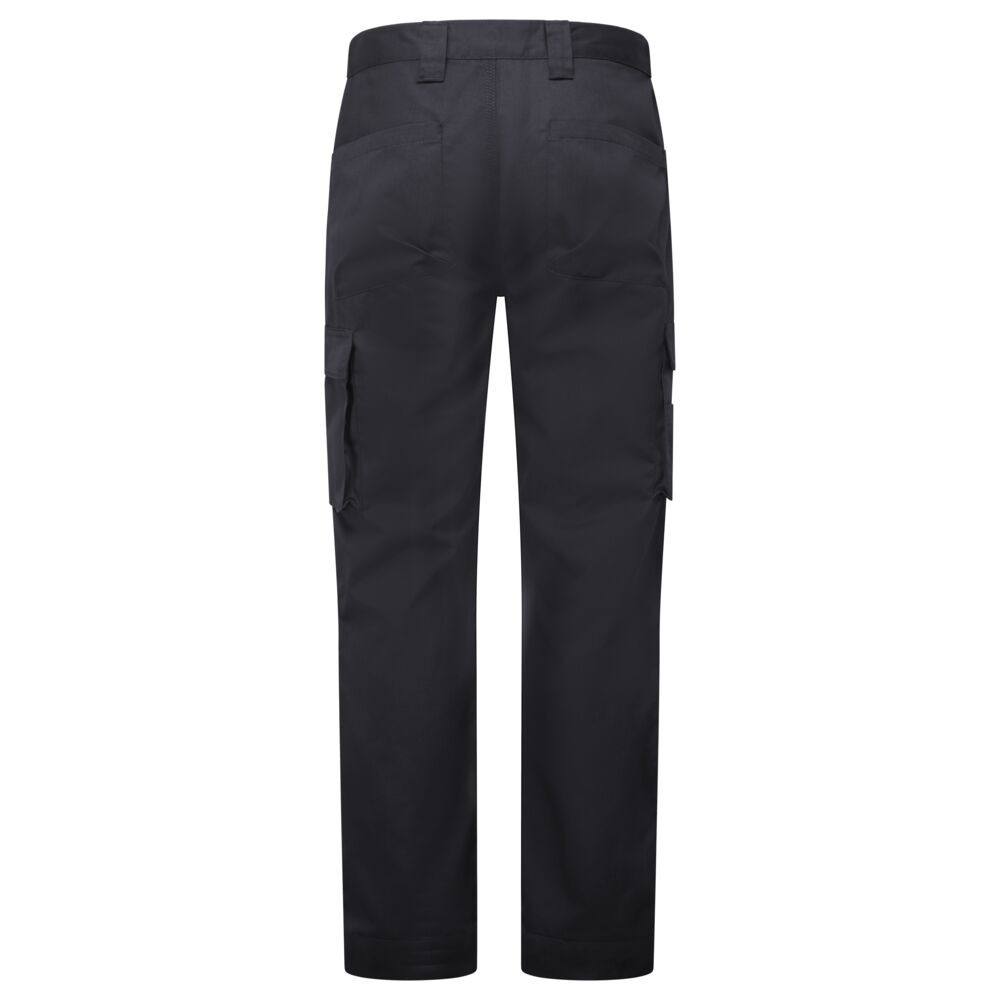 A nadrág alapanyaga a prémium minőségű, 245g/m² súlyú Kingsmill™ Eco szövet, amely 65% újrahasznosított poliészterből és 35% pamutból áll. Ez a kombináció garantálja a kiváló kopásállóságot és a hosszan tartó színtartósságot. A kritikus pontokon háromszoros varrással és megerősített reteszeléssel (bartack) készült, ami rendkívüli tartósságot biztosít még a legkeményebb munkakörülmények között is.