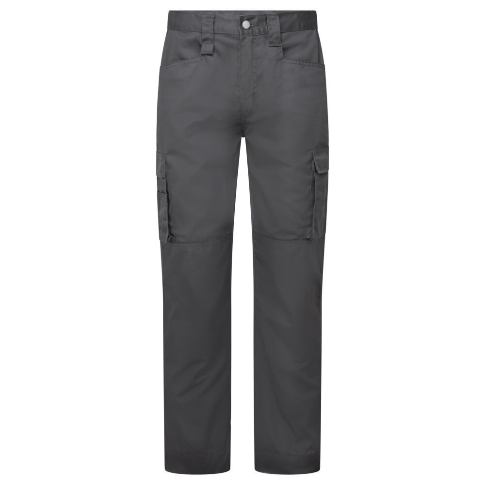 A nadrág alapanyaga a prémium minőségű, 280g súlyú Kingsmill™ Eco szövet, amely 65% újrahasznosított poliészterből és 35% pamutból áll. Ez az innovatív anyag nemcsak csökkenti a környezeti terhelést, hanem rendkívül kopásálló és kényelmes viseletet is garantál. A kritikus pontokon alkalmazott háromszoros varrás és a megerősített panelek tovább növelik a nadrág élettartamát, még a legkeményebb munkakörülmények között is.