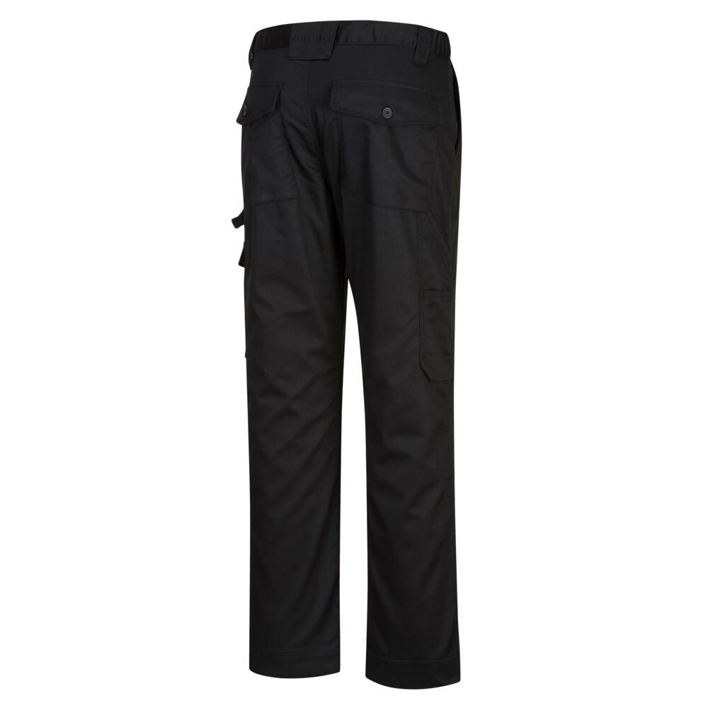 A nadrág alapanyaga a Portwest által fejlesztett, 245g súlyú Kingsmill™ szövet, amely 65% poliészter és 35% pamut keveréke. Ez az anyagkombináció kiválóan ötvözi a poliészter tartósságát és színtartását a pamut légáteresztő képességével és kényelmével. A kritikus pontokon háromszoros varrással és megerősített reteszeléssel (bartack) készült, ami rendkívüli szakítószilárdságot biztosít. Emellett a szövet UPF 40+ minősítéssel rendelkezik, amely az UV-sugárzás 98%-át blokkolja.