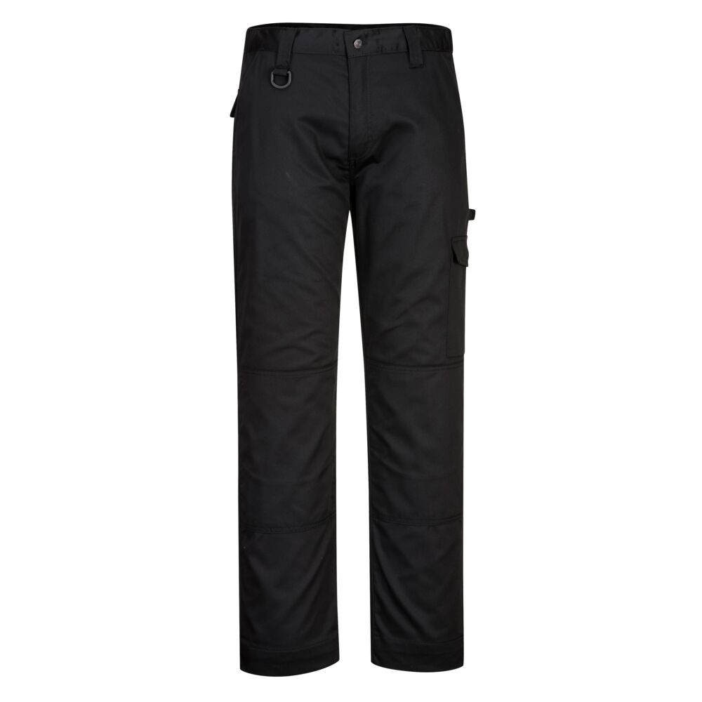A nadrág alapanyaga a Portwest által fejlesztett, 245g súlyú Kingsmill™ szövet, amely 65% poliészter és 35% pamut keveréke. Ez az anyagkombináció kiválóan ötvözi a poliészter tartósságát és színtartását a pamut légáteresztő képességével és kényelmével. A kritikus pontokon háromszoros varrással és megerősített reteszeléssel (bartack) készült, ami rendkívüli szakítószilárdságot biztosít. Emellett a szövet UPF 40+ minősítéssel rendelkezik, amely az UV-sugárzás 98%-át blokkolja.