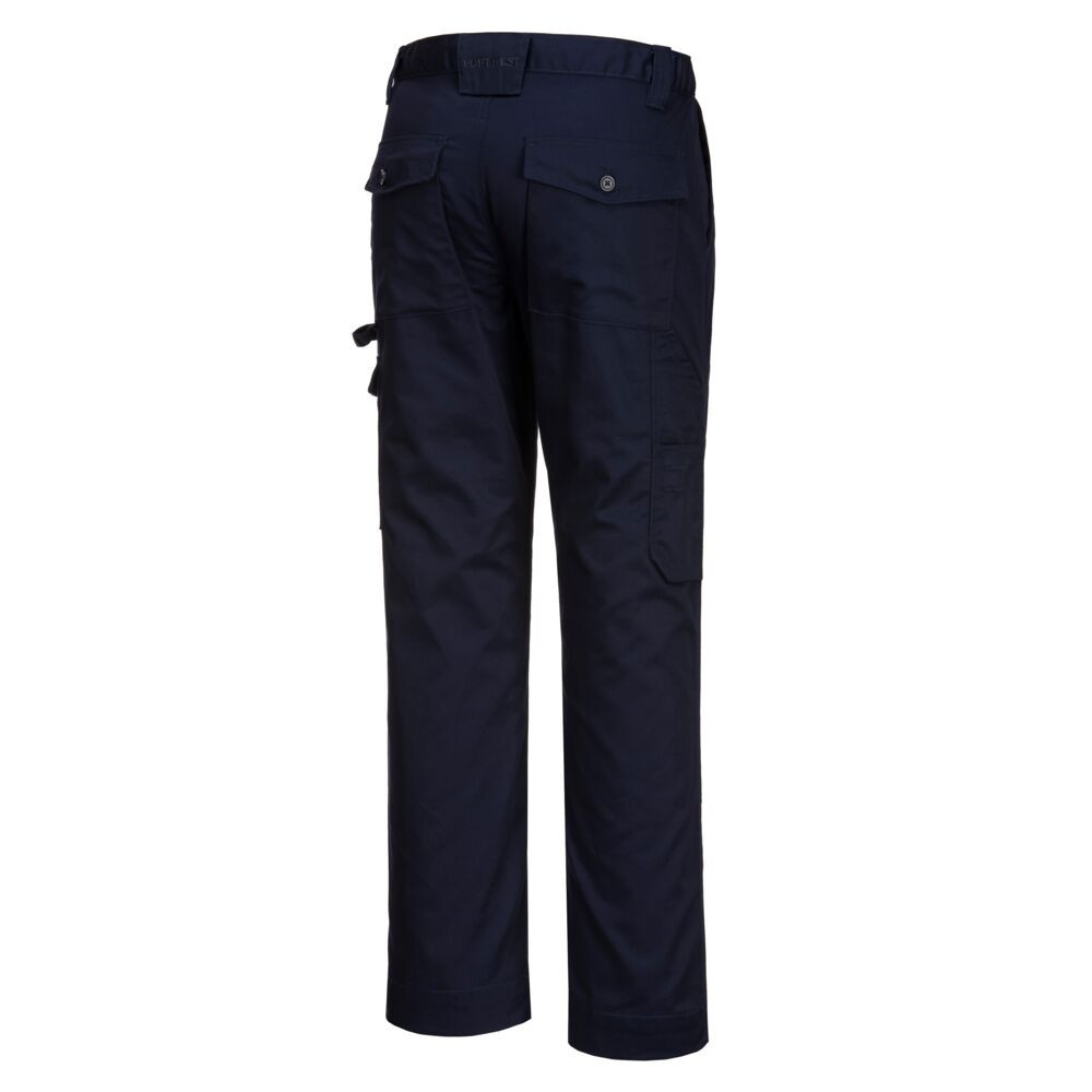 A nadrág alapanyaga a Portwest által fejlesztett, prémium minőségű Kingsmill™ 245g súlyú szövet, amely 65% poliészter és 35% pamut keveréke. Ez az anyagösszetétel garantálja a kivételes kopásállóságot, a színtartósságot és a méretstabilitást, miközben kényelmes viseletet biztosít egész napra. A kritikus pontokon tripla varrással megerősítették a maximális tartósság érdekében.
