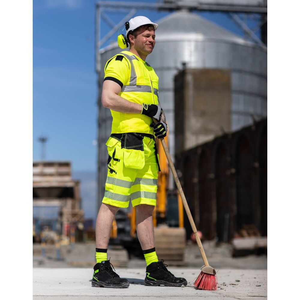 A CV02 hűsítő mellény nem csupán a komfortot szolgálja, hanem a legszigorúbb munkavédelmi előírásoknak is megfelel. A termék az EN ISO 20471 Class 2 szabvány szerint tanúsított, amely a professzionális használatra szánt, közepes kockázatú környezetben viselt jól láthatósági ruházatra vonatkozik. A fluoreszkáló sárga anyag és a stratégiailag elhelyezett fényvisszaverő szalagok rossz fényviszonyok és sötétedés után is garantálják a viselő láthatóságát.