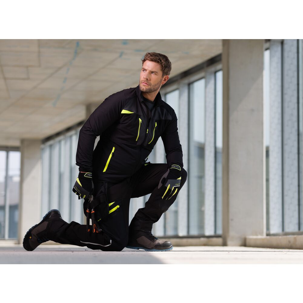 Bár a nadrág önmagában nem rendelkezik specifikus védelmi minősítéssel, a kialakítása a biztonságot és a tartósságot helyezi előtérbe. A térdvédő zsebek lehetővé teszik az EN 14404 szabványnak megfelelő térdvédők behelyezését, így védelmet nyújtanak a térdelő munkavégzés során. A magasított derékrész hátul extra védelmet és kényelmet nyújt, megakadályozva a derék kivillanását hajolás vagy guggolás közben.