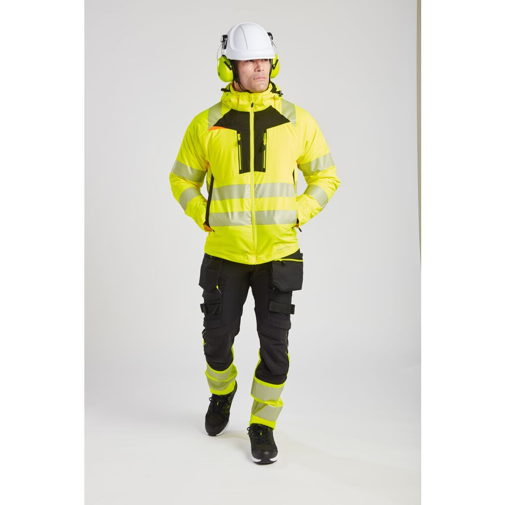 • Fokozott láthatóság: A HiVisTex Pro szegmentált, hőillesztett fényvisszaverő szalagok rugalmasak és növelik a láthatóságot minden irányból.