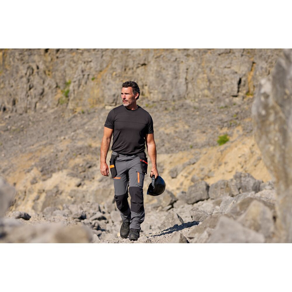 A funkcionalitás mellett a védelem is kiemelt szerepet kap. A póló anyaga UPF 40+ minősítéssel rendelkezik az EN 13758-2 szabvány szerint, ami azt jelenti, hogy a szövet blokkolja a káros UV-sugarak 98%-át. Ezáltal ideális választás kültéri munkavégzéshez, extra védelmet nyújtva a napsugárzás ellen.