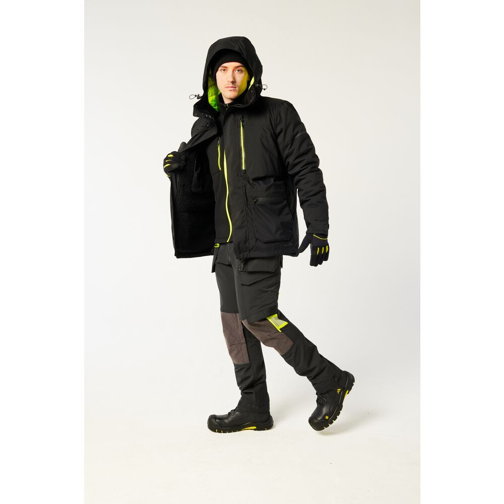 A nadrág funkcionalitását a gondosan megtervezett tárolási lehetőségek maximalizálják. A levehető, cipzáras lengőzsebek extra sokoldalúságot kínálnak, míg a számos zseb – köztük a vonalzótartó, a könnyen hozzáférhető oldalsó zsebek és a biztonságos telefontartó – lehetővé teszi a szerszámok és személyes tárgyak rendezett és biztonságos tárolását. A magasított, párnázott derékrész további kényelmet és védelmet nyújt a deréktájéknak.