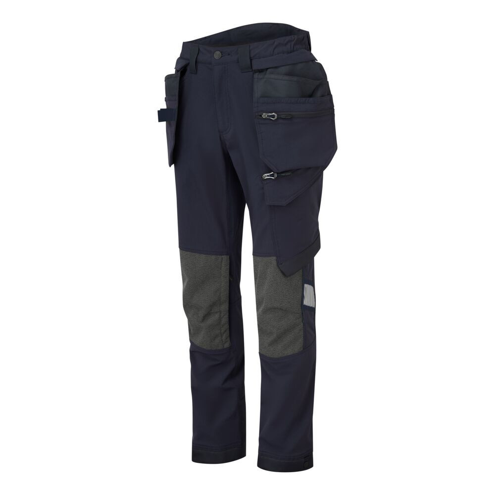 A funkcionalitás jegyében a nadrágot számos praktikus zsebbel látták el. A levehető, cipzáras lengőzsebek ideálisak a szerszámok és kisebb alkatrészek tárolására, míg a nagyméretű oldalsó zsebek, a vonalzótartó és a telefontartó zseb további tárolási lehetőségeket kínálnak. A kritikus pontokon, például a térd- és combrészen elhelyezett megerősítések növelik a nadrág élettartamát és kopásállóságát.