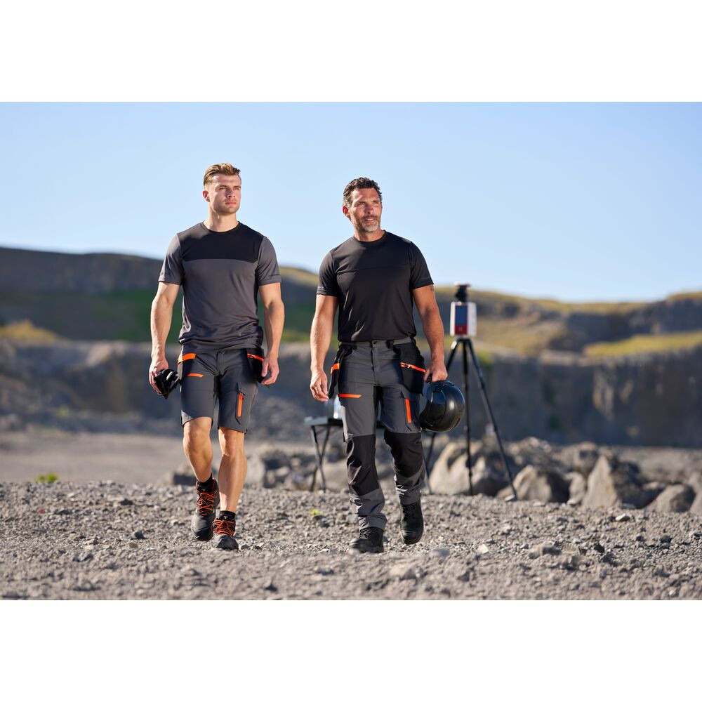 A biztonság és a láthatóság kiemelt szempont volt a tervezés során. A nadrág stratégiailag elhelyezett Hi-VisTex Pro szegmentált fényvisszaverő szalagokkal van ellátva, amelyek gyenge fényviszonyok között is növelik a viselő láthatóságát. A szövet UPF 40+ besorolású, így a káros UV-sugarak 98%-át blokkolja, védelmet nyújtva a szabadtéri munkavégzés során.