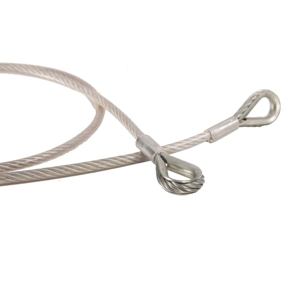 • Védő PVC-bevonat és Megerősített Szemek: Az átlátszó PVC-bevonat védi a kötelet a környezeti hatásoktól, megkönnyíti a kezelését és lehetővé teszi a sodrony állapotának könnyű vizuális ellenőrzését. A fémhüvellyel megerősített hurkok megakadályozzák a karabinerek okozta kopást.