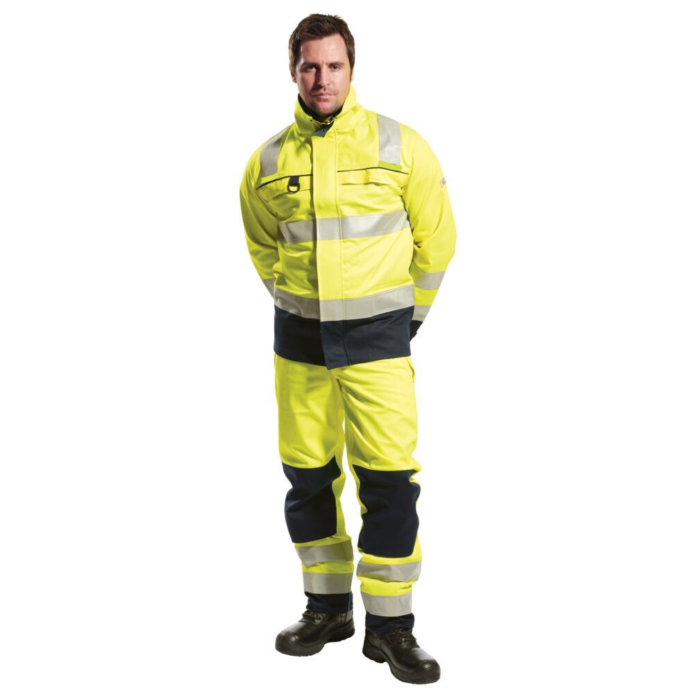 Portwest FR62 Bizflame Hi-Vis lángálló multi-norm nadrág sárga-tengerészkék