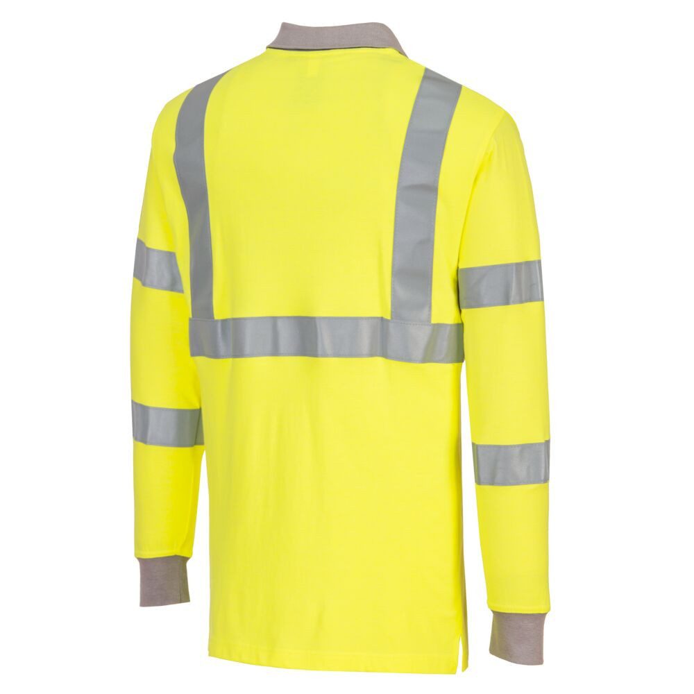 A póló kialakítása a funkcionalitást és a kényelmet helyezi előtérbe. A könnyű, 210g súlyú anyag kiváló nedvességelvezető képességgel bír, így egész nap szárazon és kényelmesen tartja viselőjét. A rugalmas, szegmentált lángálló fényvisszaverő szalagok maximális láthatóságot és szabad mozgást biztosítanak, míg a bordázott mandzsetták és a kontrasztos gallér professzionális megjelenést kölcsönöznek.
