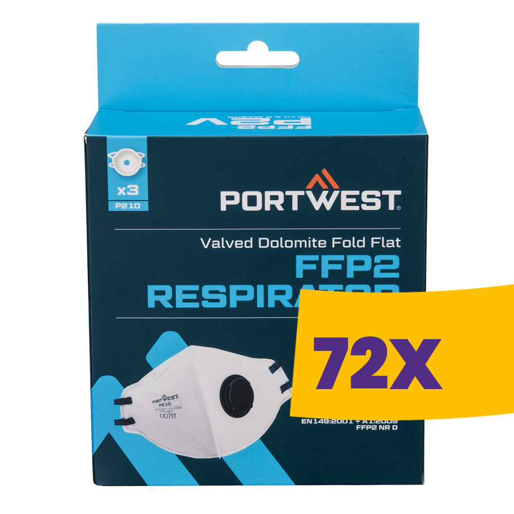 Portwest P210 FFP2 szelepes Dolomit összehajtható lapos maszk 3db (Karton - 72 csomag)