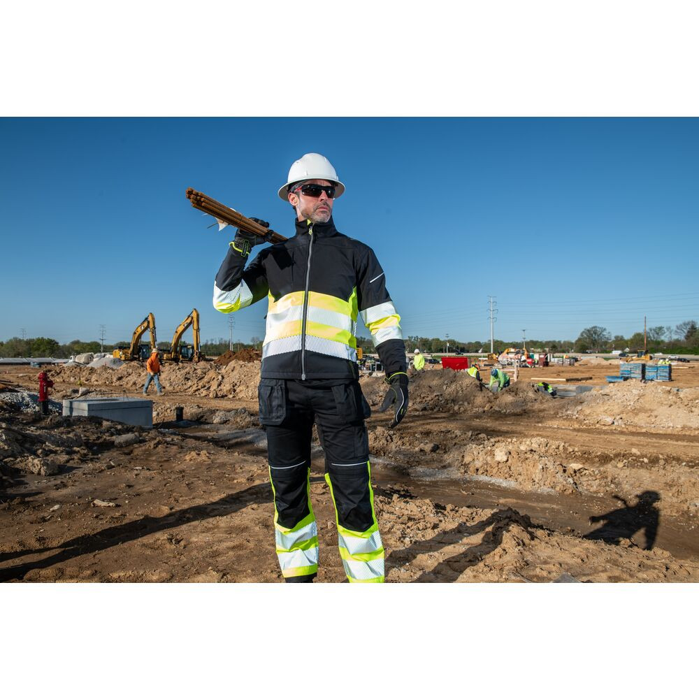 • EN ISO 20471 Class 1: A nadrág megfelel az 1. osztályú jól láthatósági ruházatra vonatkozó európai szabványnak. A stratégiailag elhelyezett, prémium minőségű HiVisTex Pro szegmentált fényvisszaverő szalagok kiváló láthatóságot garantálnak gyenge fényviszonyok között is, miközben rugalmasságukkal növelik a mozgásszabadságot.