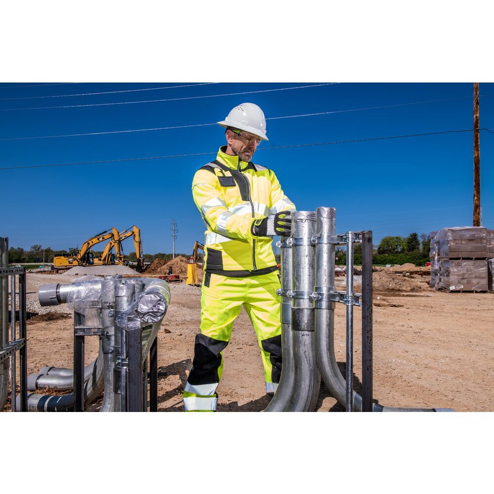 A strapabíró, vízálló és légáteresztő anyag, valamint a legmagasabb szintű láthatósági minősítések garantálják a biztonságot és kényelmet.