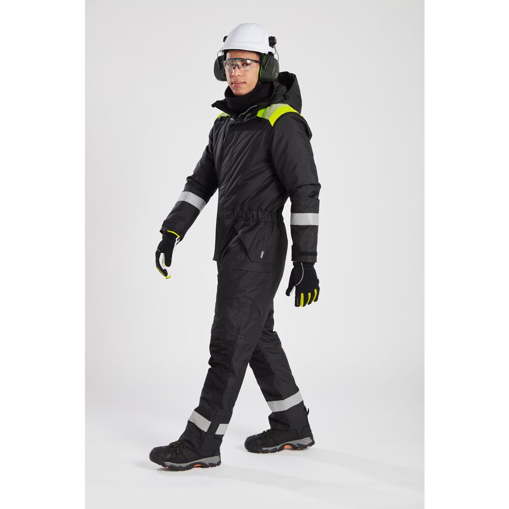 • Praktikus részletek: A levehető kapucni, a kétutas cipzár és a bokánál található cipzáras nyílás megkönnyíti a fel- és levételt, akár munkavédelmi csizmával is.