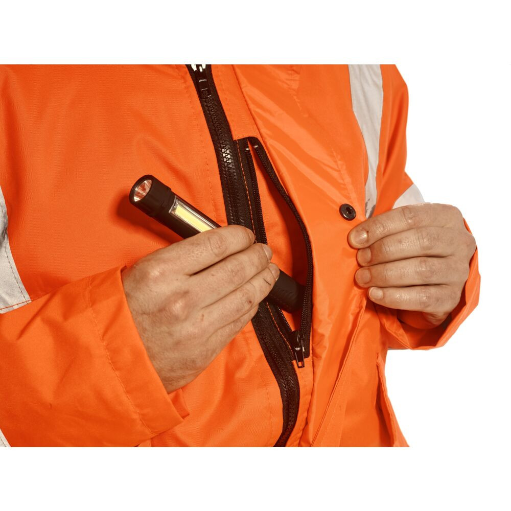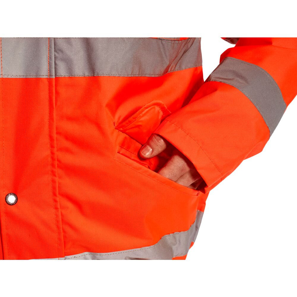 • Maximális láthatóság: A fluoreszkáló narancs szín és a prémium minőségű HiVisTex Pro fényvisszaverő szalagok garantálják a láthatóságot minden fényviszony mellett.