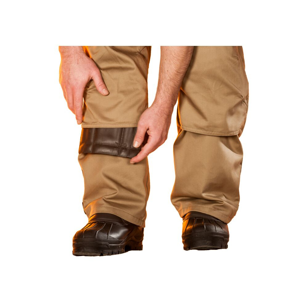 • Nadrágzsebbe Helyezhető Kialakítás: A térdpárna a kompatibilis munkanadrágok erre a célra kialakított belső zsebébe csúsztatható. Ez a megoldás kiküszöböli a kényelmetlen, vágó vagy dörzsölő pántokat, és biztosítja, hogy a védelem mindig a megfelelő helyen legyen.