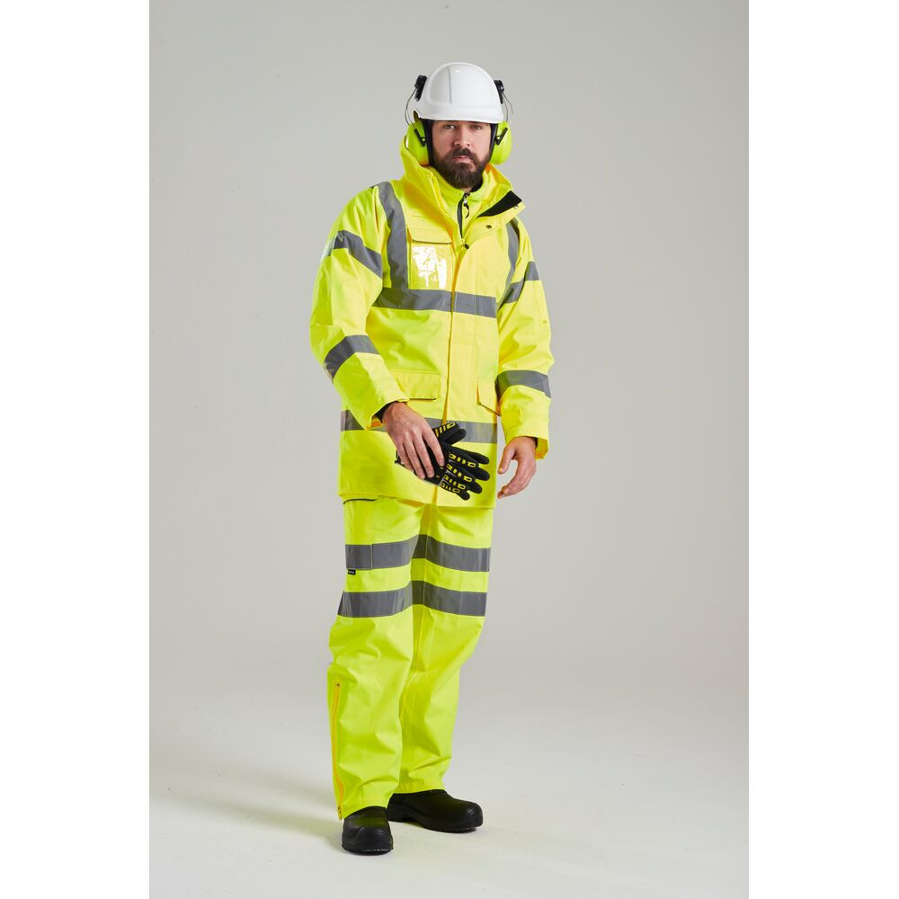 • EN ISO 20471 Class 2: Magas szintű láthatóságot biztosít nappali és éjszakai fényviszonyok között, valamint rossz időjárási körülmények esetén. A sárga szín és a fényvisszaverő csíkok garantálják a jó észlelhetőséget.