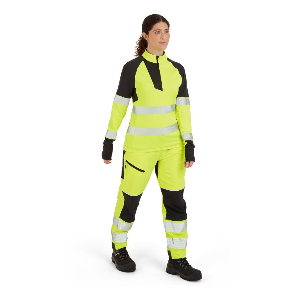 A Portwest T173 egy modern, női szabású, jól láthatósági pulóver a prémium PW3 termékcsaládból. A rugalmas, szegmentált fényvisszaverő szalagok és a kényelmes, negyed cipzáras kialakítás kiváló viseletet biztosítanak. Megfelel az EN ISO 20471 Class 2 szabványnak, garantálva a maximális láthatóságot és biztonságot.