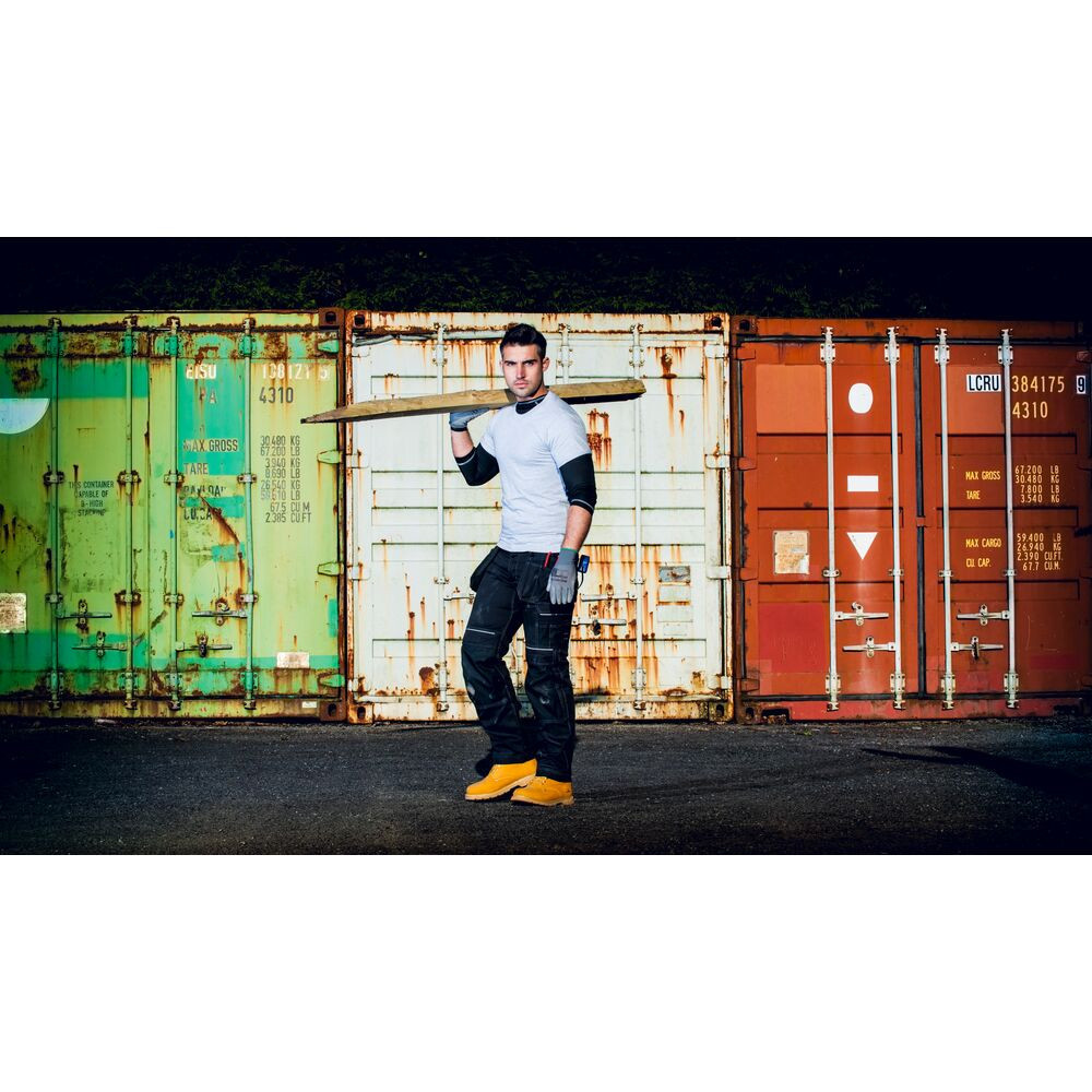 Biztonsági előírások és tanúsítványok: A nadrág stratégiailag elhelyezett HiVisTex Pro szegmentált fényvisszaverő szalagokkal van ellátva, amelyek növelik a láthatóságot rossz fényviszonyok között. A szövet UPF 40+ besorolással rendelkezik, így a káros UV-sugarak 98%-át blokkolja. A nadrág CE minősítéssel rendelkezik, és a megfelelő Portwest térdpárnákkal (pl. S156) használva megfelel az EN 14404:2004+A1:2010 Type 2, Level 0 szabványnak (térdvédelem).