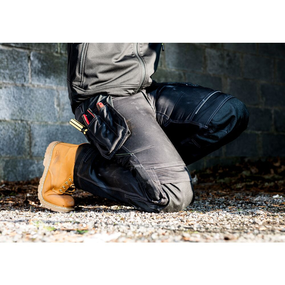 • Felülről tölthető térdvédőzsebek: Lehetővé teszik a térdvédő párnák gyors és egyszerű behelyezését, növelve a kényelmet és a védelmet térdelő munkavégzés során.