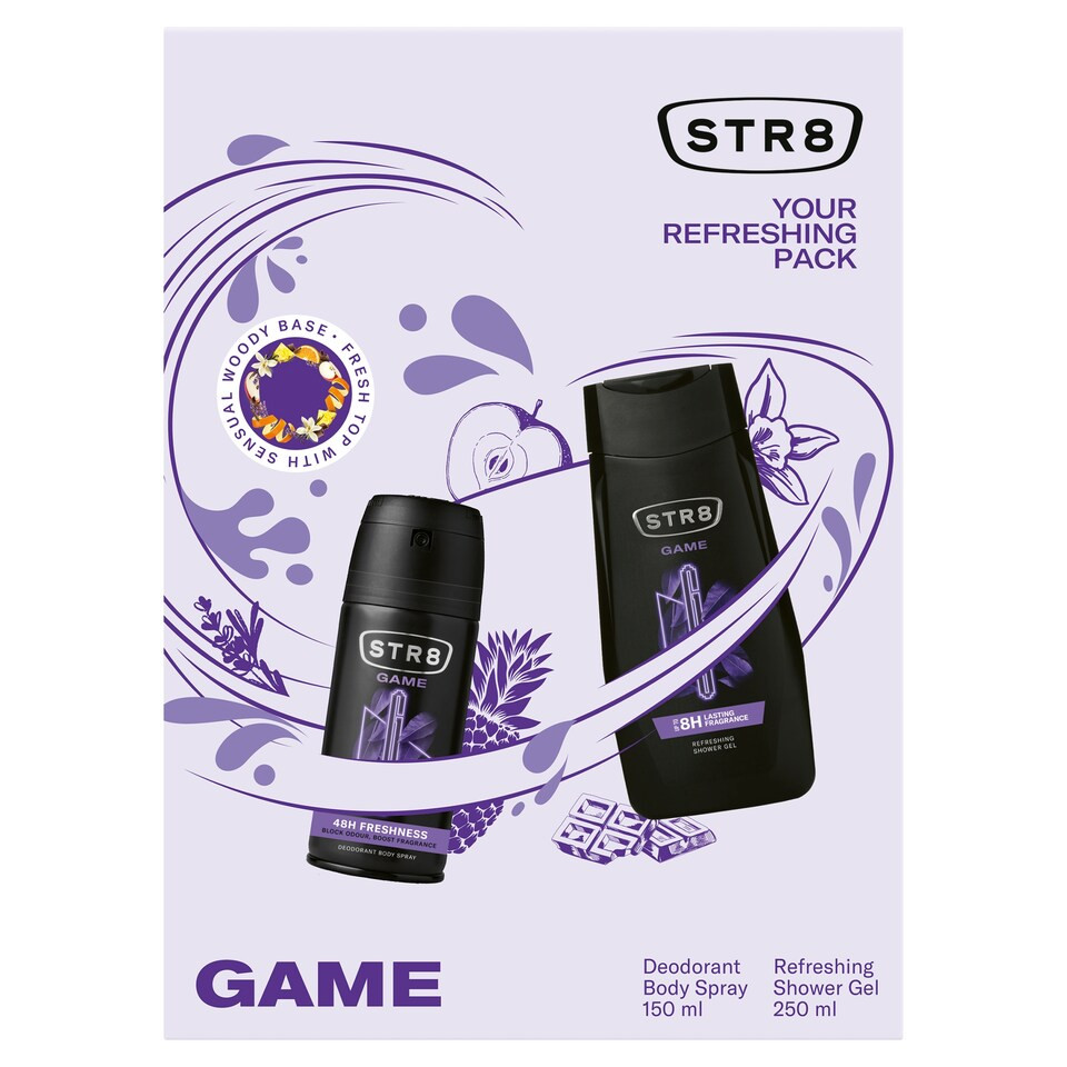 Az STR8 Game férfi ajándékcsomag a modern, céltudatos férfiaknak készült. A szett egy frissítő tusfürdőt és egy hosszan tartó védelmet nyújtó dezodort tartalmaz. Élvezze a fás-fűszeres Game illat energizáló hatását egész nap!