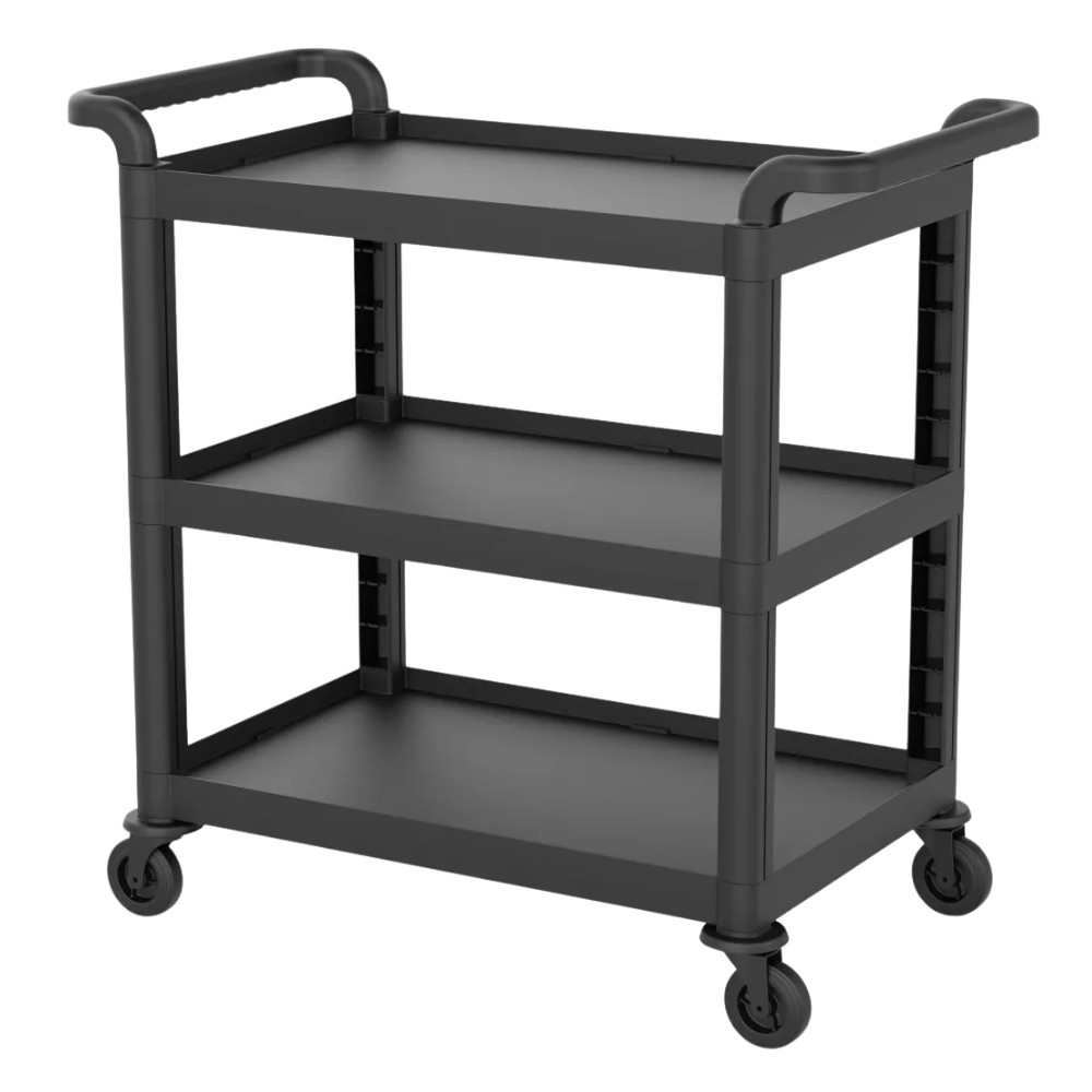 A nyitott, műanyag vázas szervizkocsi kifejezetten a professzionális környezet igényeihez készült. Tartós, ellenálló műanyag szerkezete és praktikus kialakítása lehetővé teszi eszközök, edények, étel- vagy takarítóanyagok biztonságos és gyors szállítását.