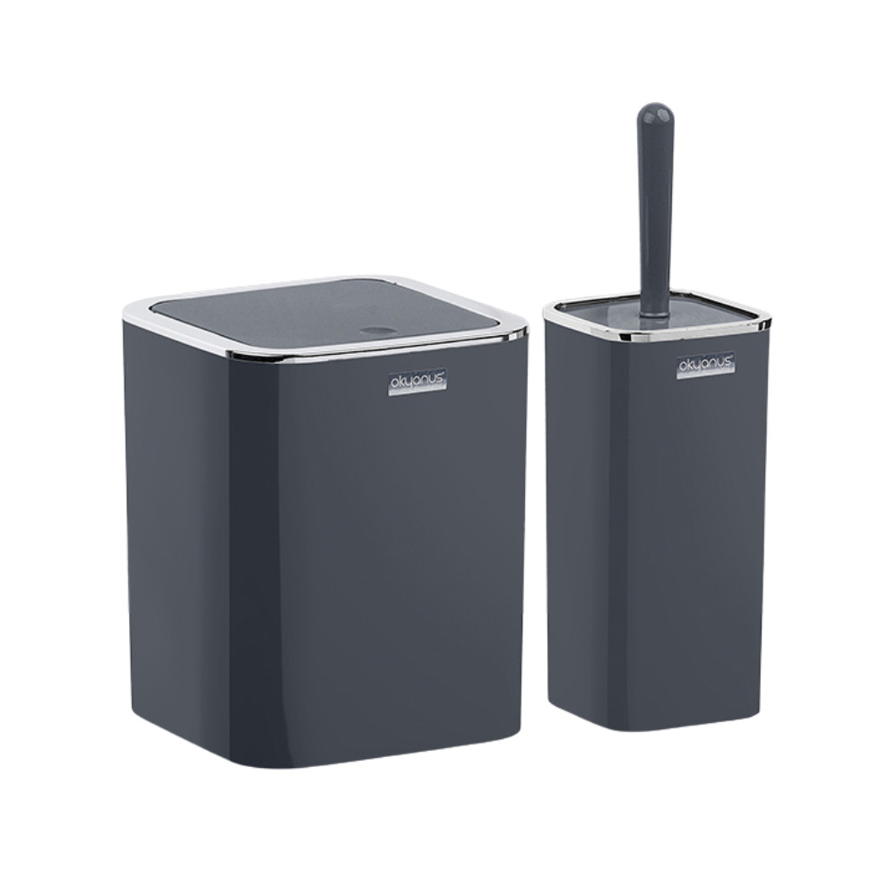 Praktikus szögletes fürdőszobai szemetes és WC kefe szett elegáns antracit színben. Modern kialakítás, helytakarékos méret és könnyen tisztítható felület a rendezett fürdőszobáért.