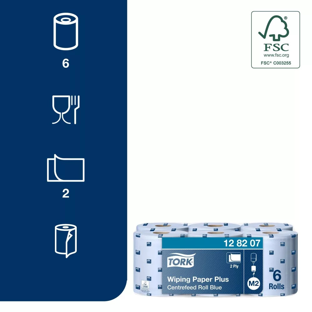Tork általános belsőmagos törlőpapír plus 19cm átm. - 2 rétegű, kék, 158m (Karton - 6 tek)