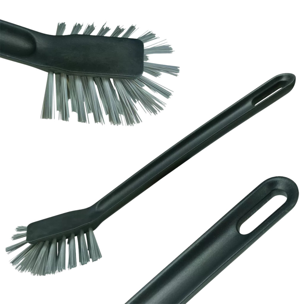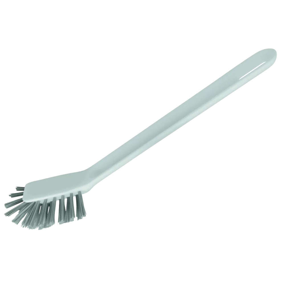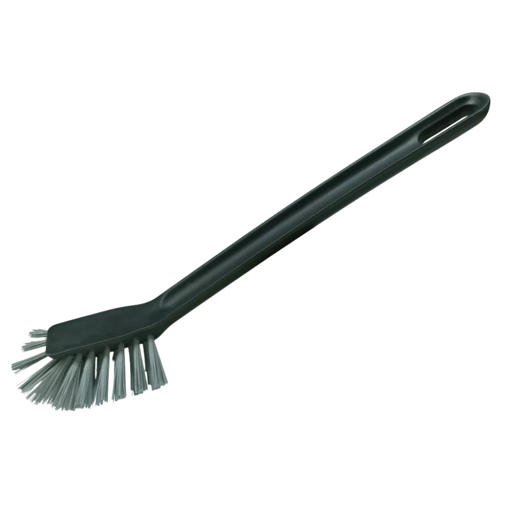 Skandináv stílusú mosogatókefe ergonomikus nyéllel és ívelt, sűrű sörtékkel. Tartós, praktikus és esztétikus választás a mindennapi mosogatáshoz.