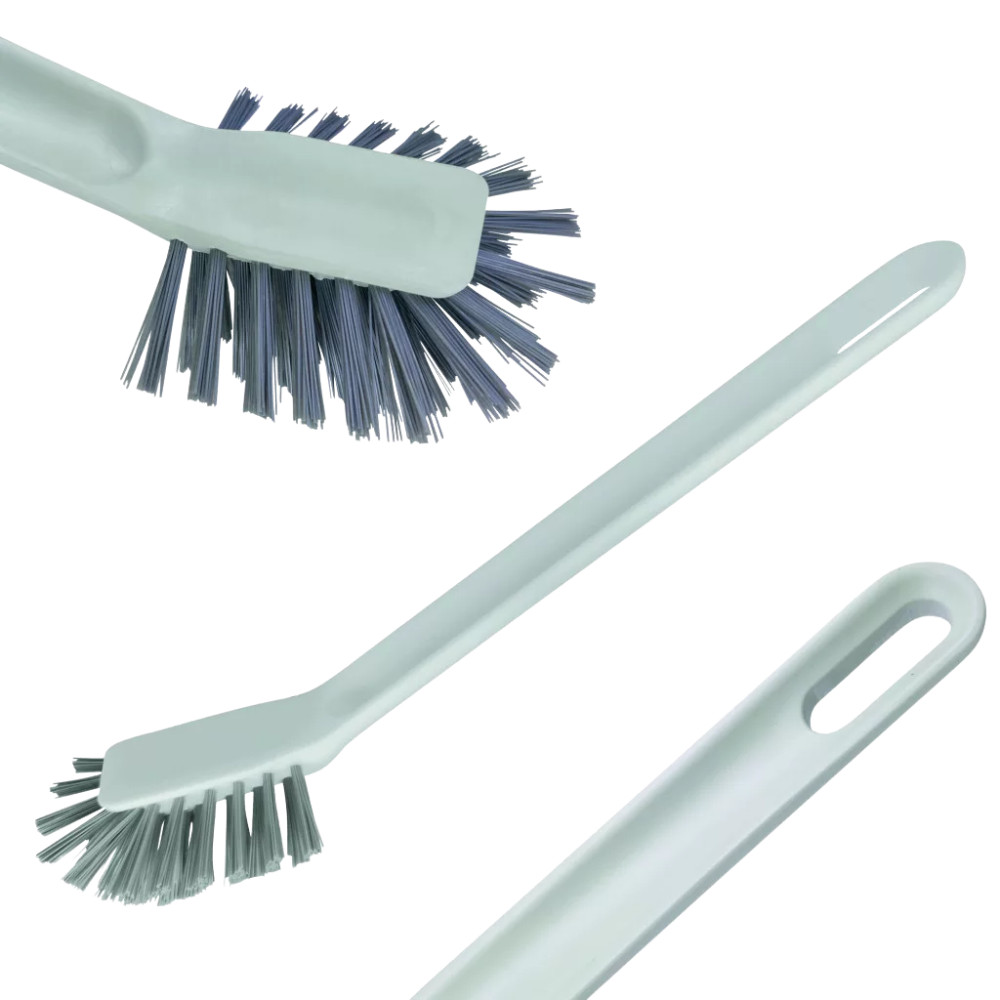 Skandináv stílusú mosogatókefe ergonomikus nyéllel és ívelt, sűrű sörtékkel. Tartós, praktikus és esztétikus választás a mindennapi mosogatáshoz.